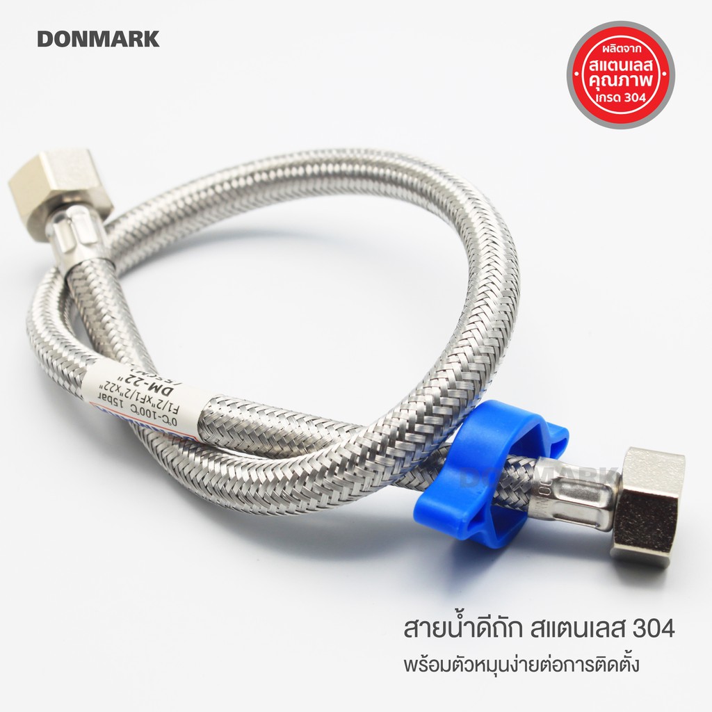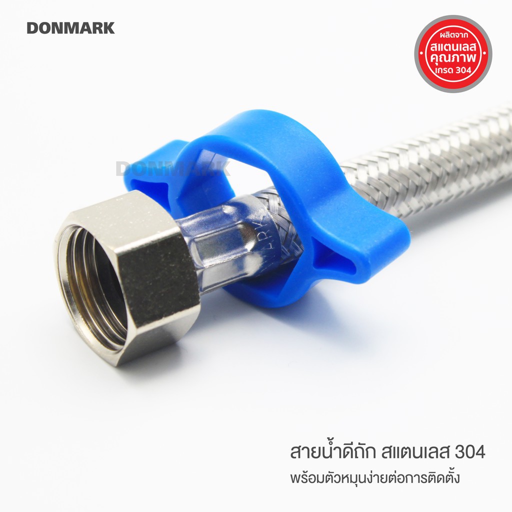 สายน้ำดีถักสแตนเลส 304 พร้อมตัวหมุน ป้องกันสนิม ทนทาน ใช้งานได้ยาวนาน DONMARK รุ่น DM