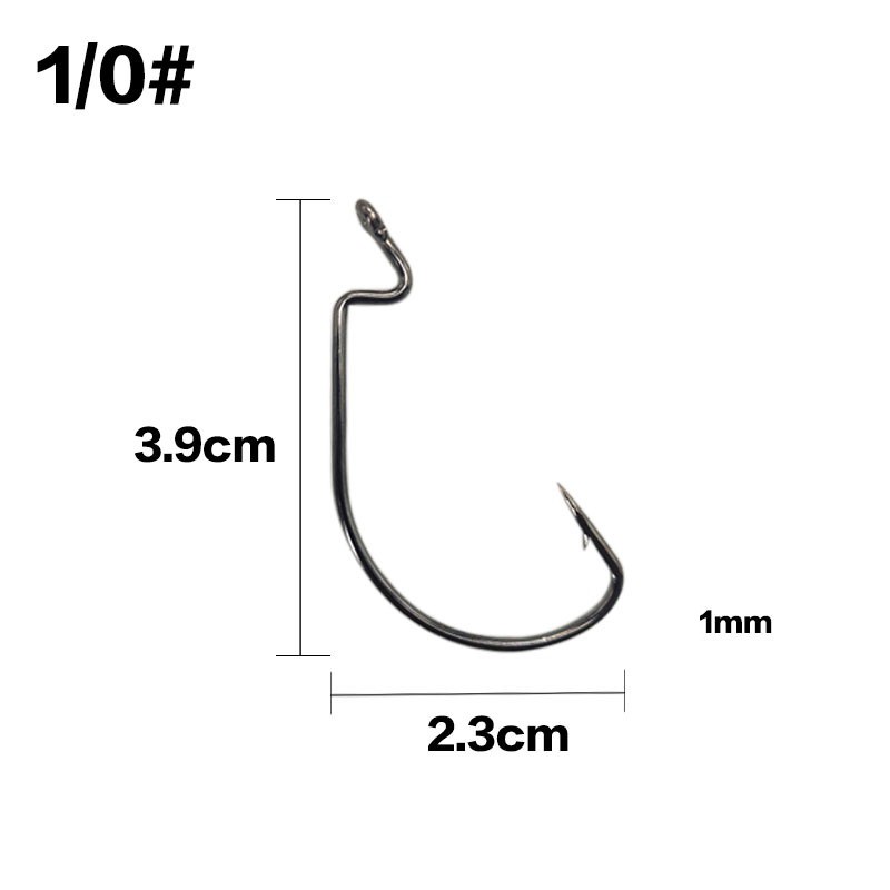 1ชิ้นกว้างช่องว่างหนอนตะขอตกปลาจิ๊กข้อเหวี่ยงบิ๊กเบสตะขอสีดําเหล็กคาร์บอนสูงข้อเหวี่ยงหนามตะขอสําห