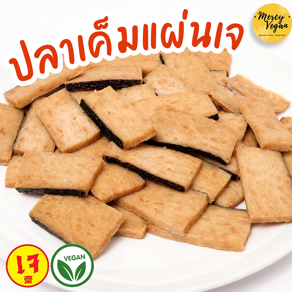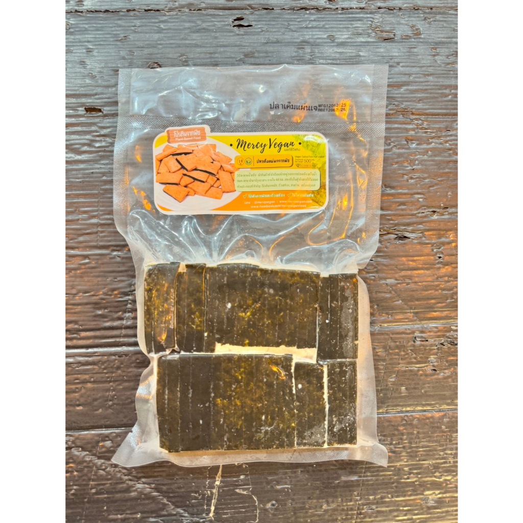 ปลาเค็มแผ่นเจ จากพืช Mercy Vegan อาหารเจแช่แข็ง มังสวิรัติ Plant based Vegan Salted Fish Half Piece