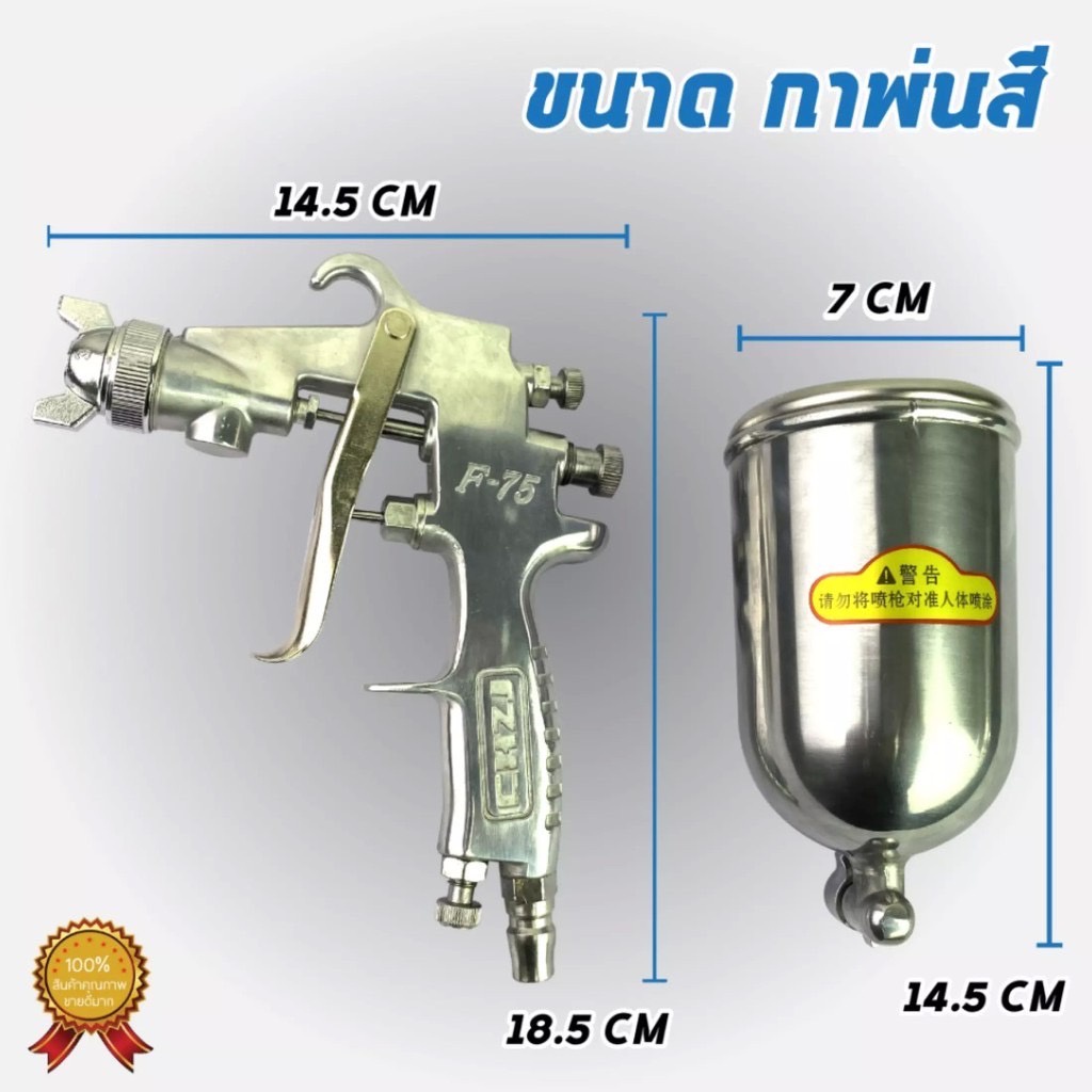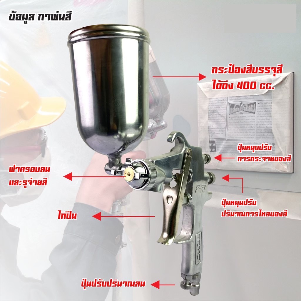 กาพ่นสี รุ่นF-75G กระป๋องบน คุณภาพสูง ขนาด 400 CC หัวเข็มขนาด 1.5 mm สำหรับพ่นสีรถยนต์ ผนังบ้าน อเนกประสงค์ พ่นสี