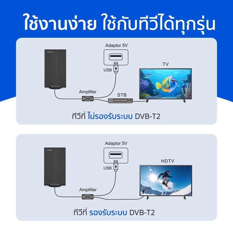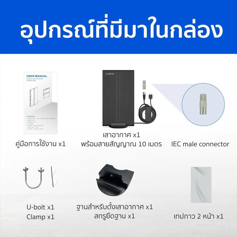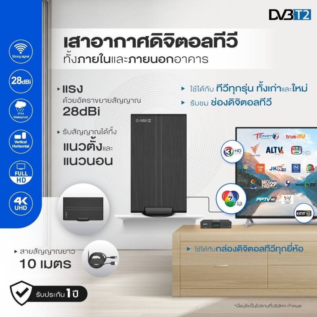 เสาอากาศทีวีดิจิตอล GMM Z ZA1 เสาอากาศภายในและภายนอก พร้อมสายสัญญาณยาว 10 เมตร
