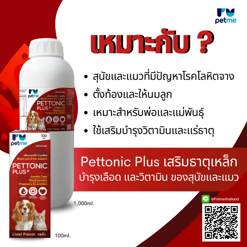 Pettonic-Plus ผลิตภัณฑ์เสริมอาหารธาตุเหล็ก วิตามินสูง บำรุงเลือด สำหรับสัตว์เลี้ยง ขนาด 100 ml.