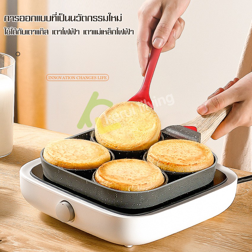 RYBACK กระทะทอดไข่ 4 หลุม กระทะทอดไข่ดาว ทอดแฮม กระทะแพนเค้ก กระทะออมเล็ต ทำอาหารเช้า pan ทำความสะอาดง่าย