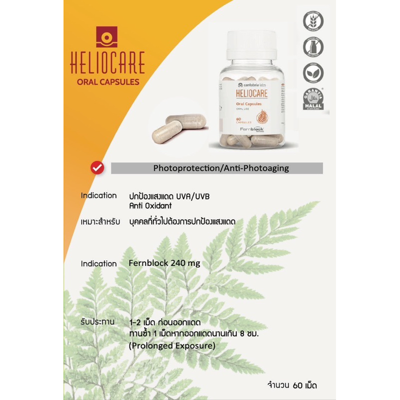ส่งฟรี! Heliocare Capsulas Advance Oral 60 Capsกันแดดกิน วิตามินกันแดด แท้💯% นำเข้าจากสเปน (สีส้มล้วน)