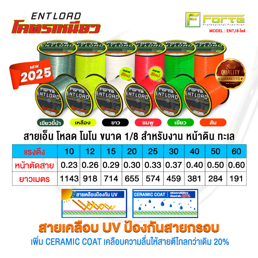 สายเอ็นโหลด ENT โมโน สีสะท้อนแสง ขนาด 1/8 สำหรับงาน หน้าดิน ทะเล