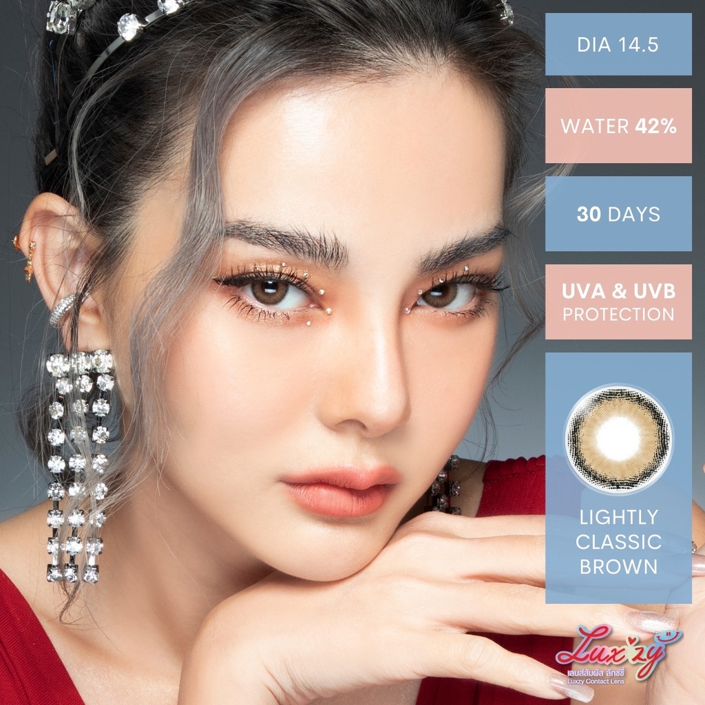 คอนแทคเลนส์🌈Lightly Classic🌈 Brown / Gray (Luxzylens) ขนาดกลาง💖