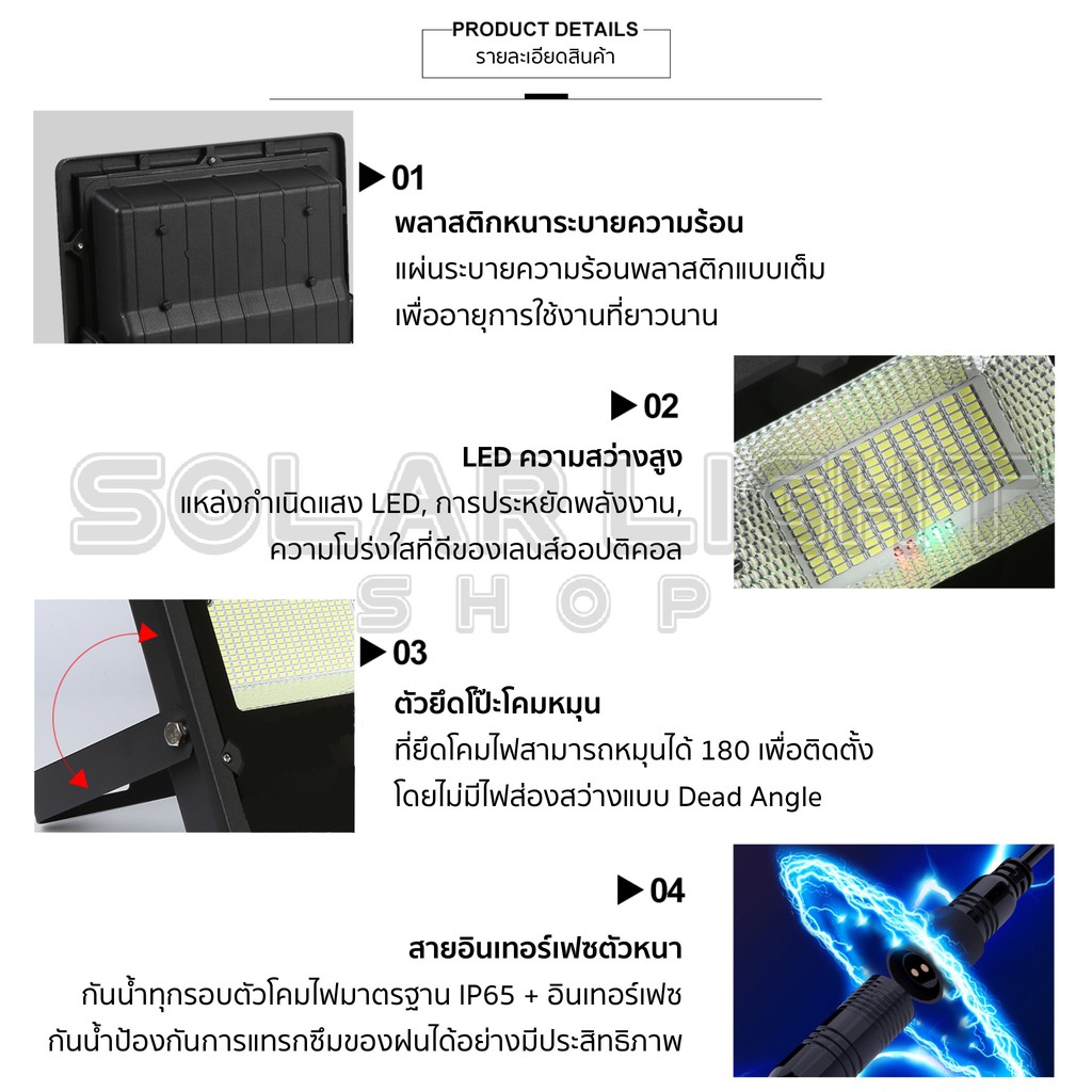 JDไฟโซล่าเซล แสงสีเหลือง 75w 150w 200w 500w solar light ไฟสปอตไลท์ ใช้พลังงานแสงอาทิตย์ พร