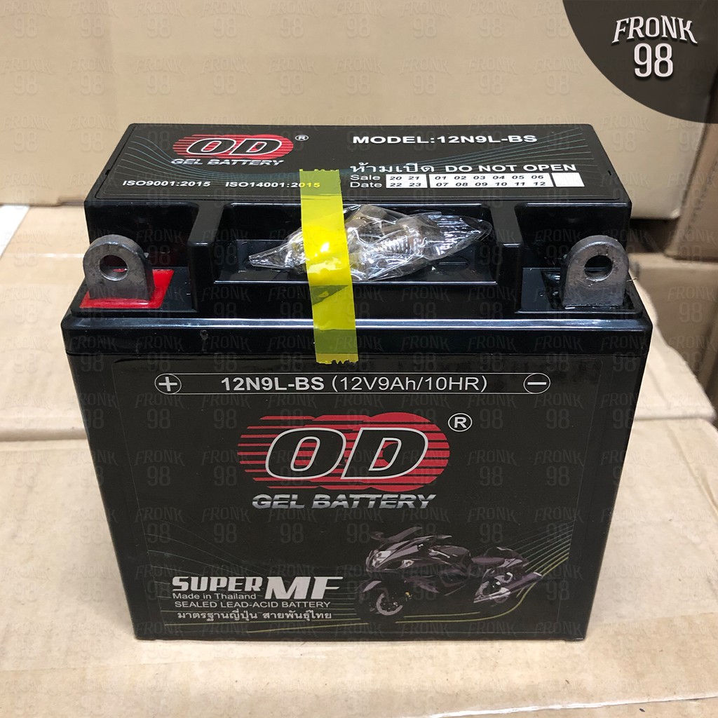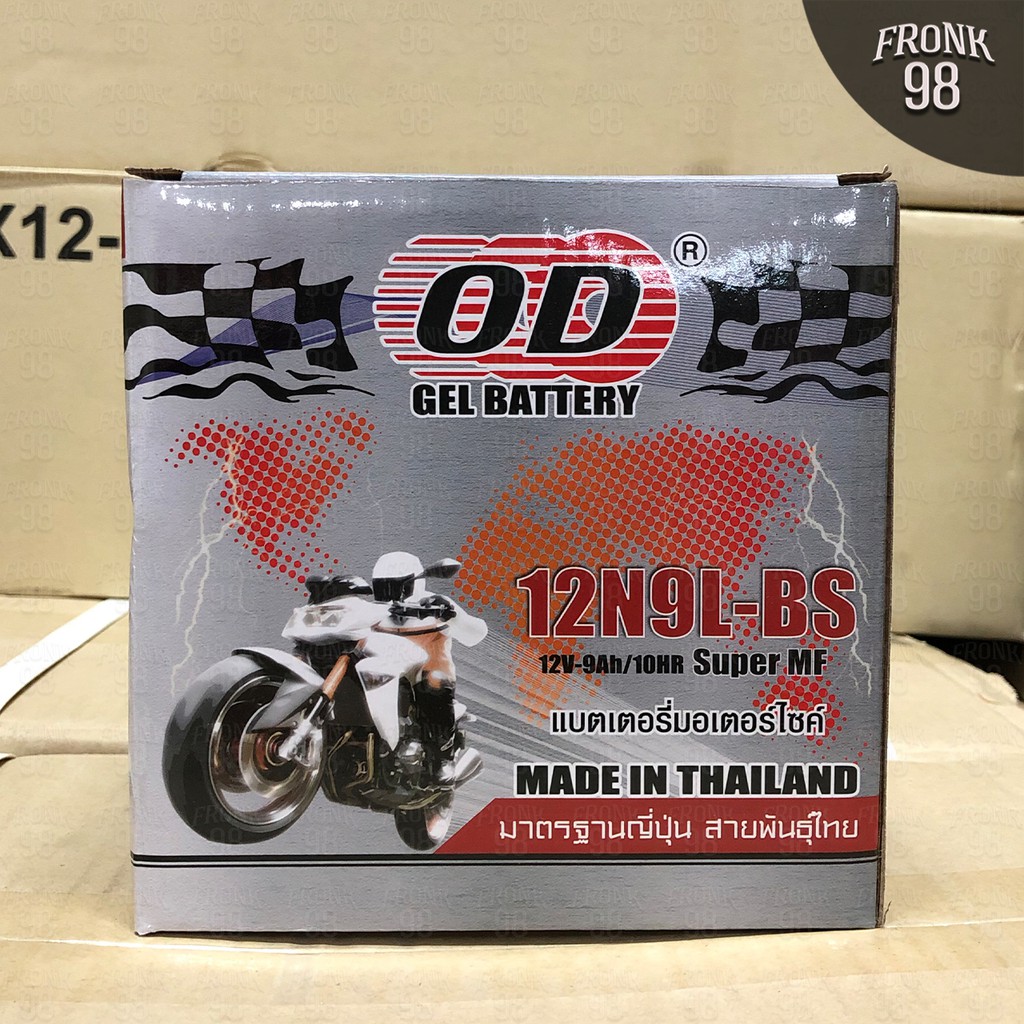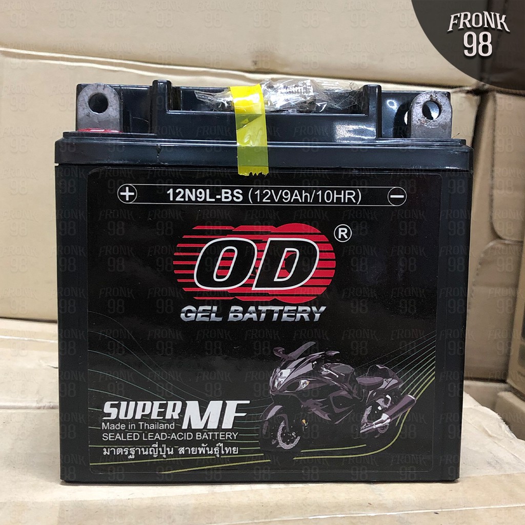 OD แบตเตอรี่ รุ่น 12N9L-BS (12V 9AH) แบบแห้ง (สำหรับรถจักรยานยนต์) "ทรงสูง"