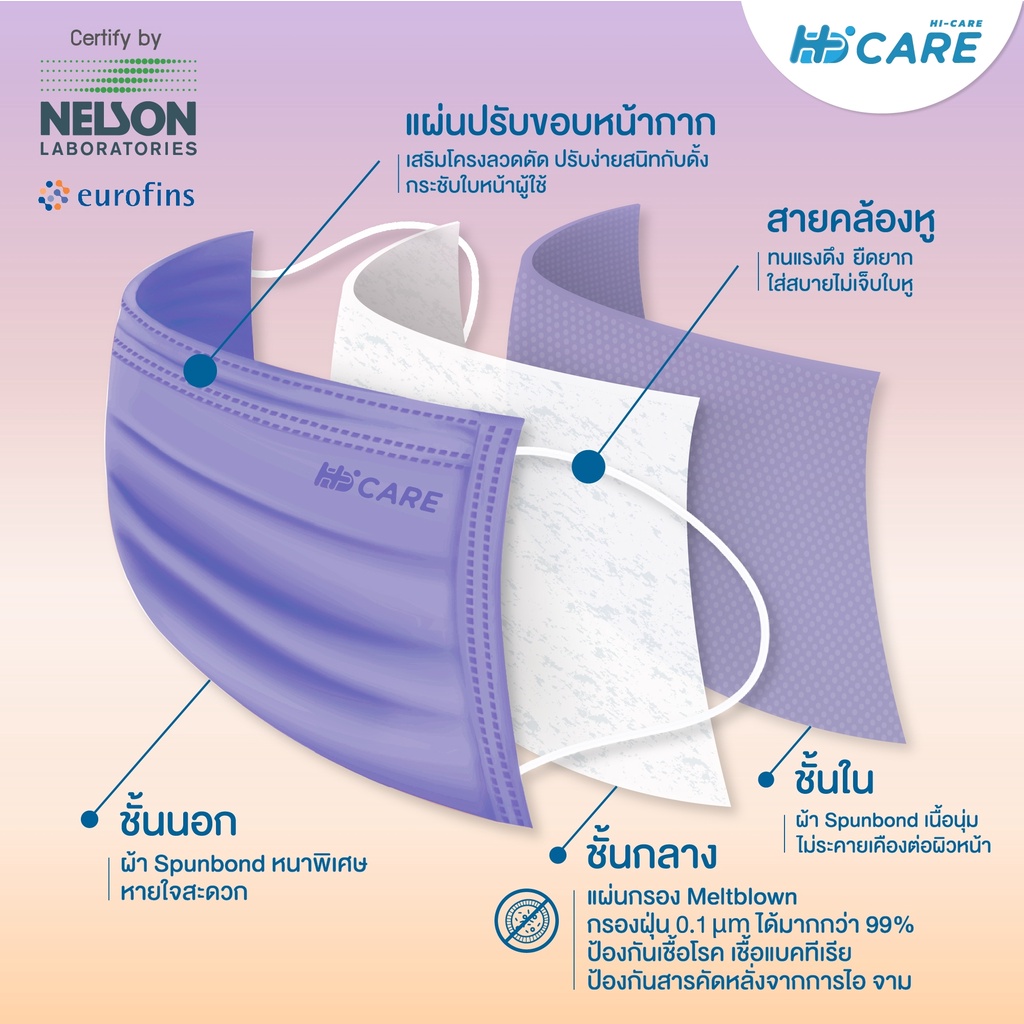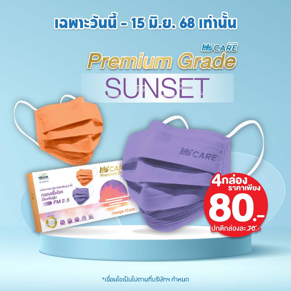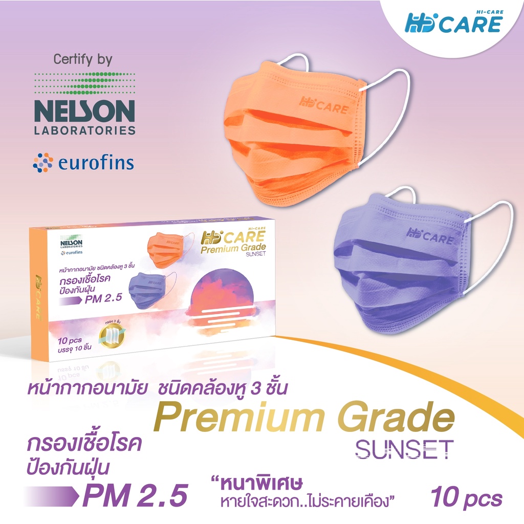 Hi-Care Premium Grade Sunset หน้ากากอนามัยหนาพิเศษ (รองรับ PM2.5 กรองเชื้อโรค) แผ่นกรอง 3 ชั้น ชนิดคล้องหู / 10 ชิ้น