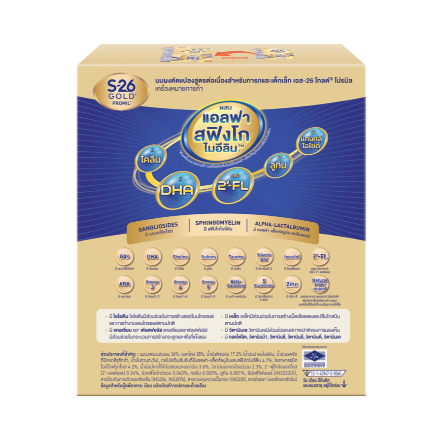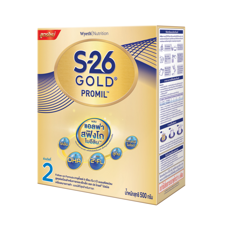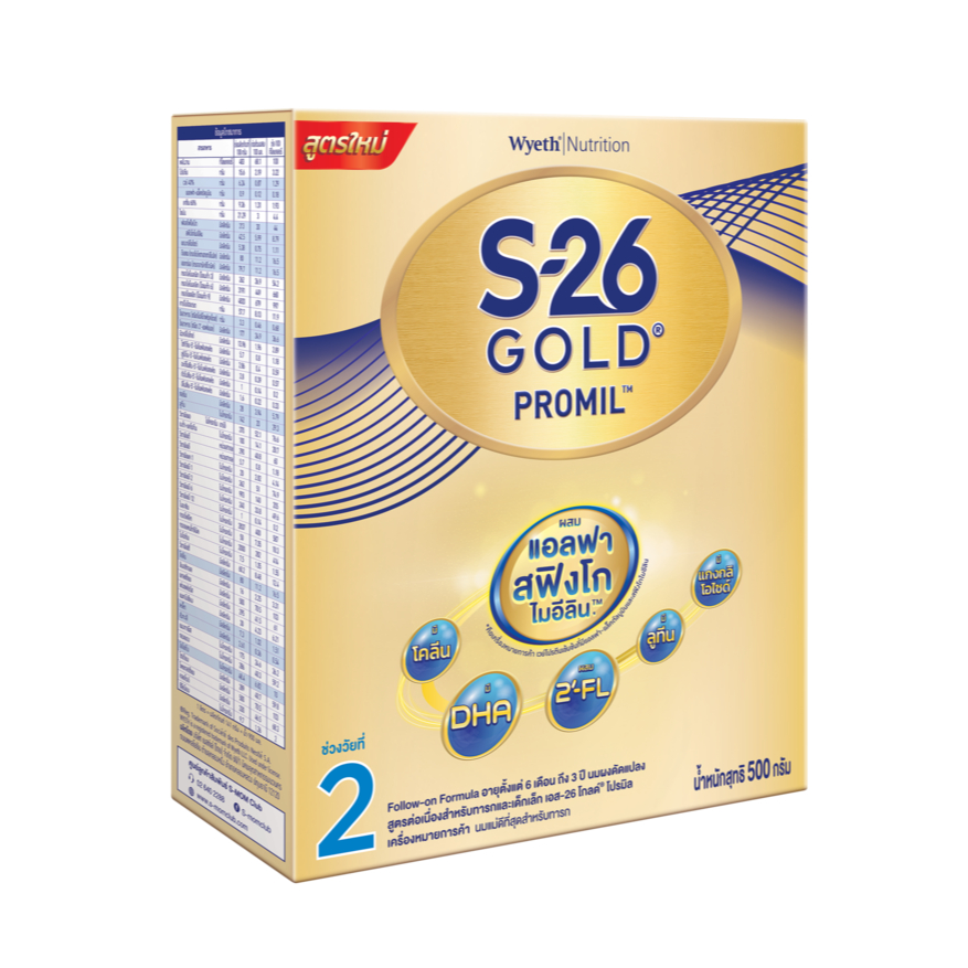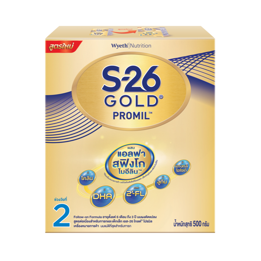 นมผง S-26 GOLD® PROMIL™ (500g) เอส-26 โกลด์® โปรมิล ผสมแอลฟา สฟิงโกไมอีลิน™ สูตร 2 (500 กรัม)