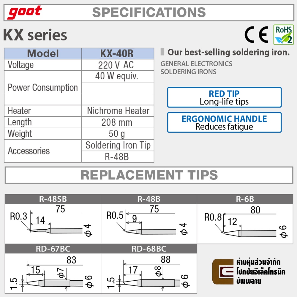 Goot KX-40R หัวแร้งบัดกรี 40W Made in Japan ด้ามจับสบาย รุ่นที่ขายดีที่สุด ปลายทนทาน หัวแร้ง