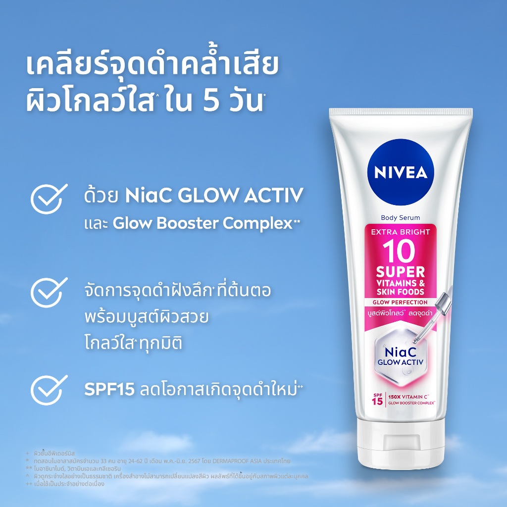 นีเวีย เซรั่มทาผิว บอดี้ เซรั่ม เอ็กซ์ตร้า ไบรท์ 10 ซูเปอร์ วิตามิน แอนด์ สกิน ฟู้ด โกลว์ เพอร์เฟคชั่น 170 มล.NIVEA