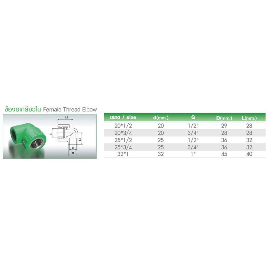 ข้องอเกลียวใน ไทยพีพีอาร์ Thai PPR เชื่อม ท่อเขียว (หลายไซส์)