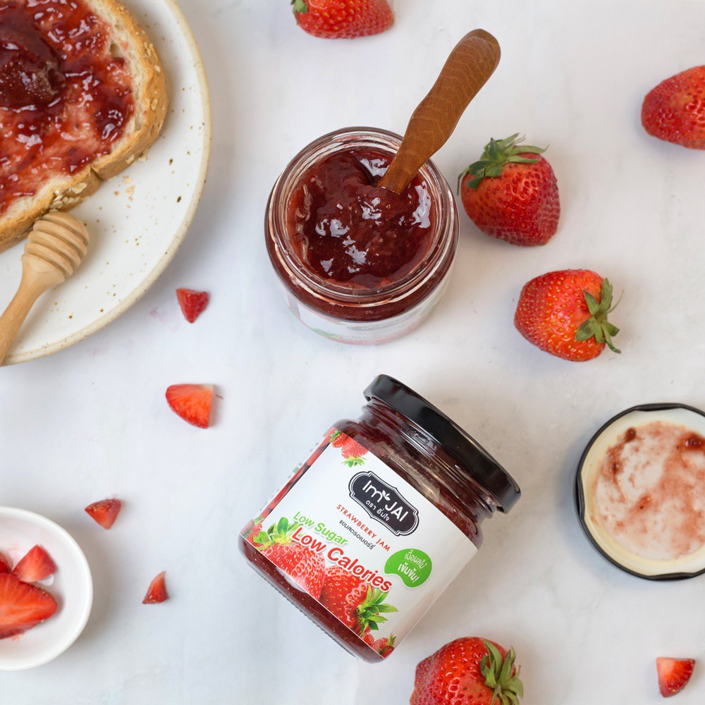 [ซื้อ 1 แถม 1] แยมสตอเบอรี่ Low Sugar 200g. น้ำตาลน้อย ตราอิ่มใจ เพื่อสุขภาพ วีแกน เจ โซเดียมต่ำ