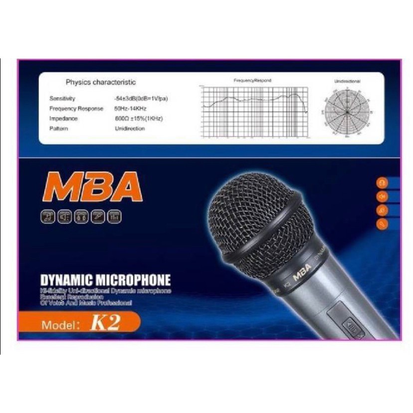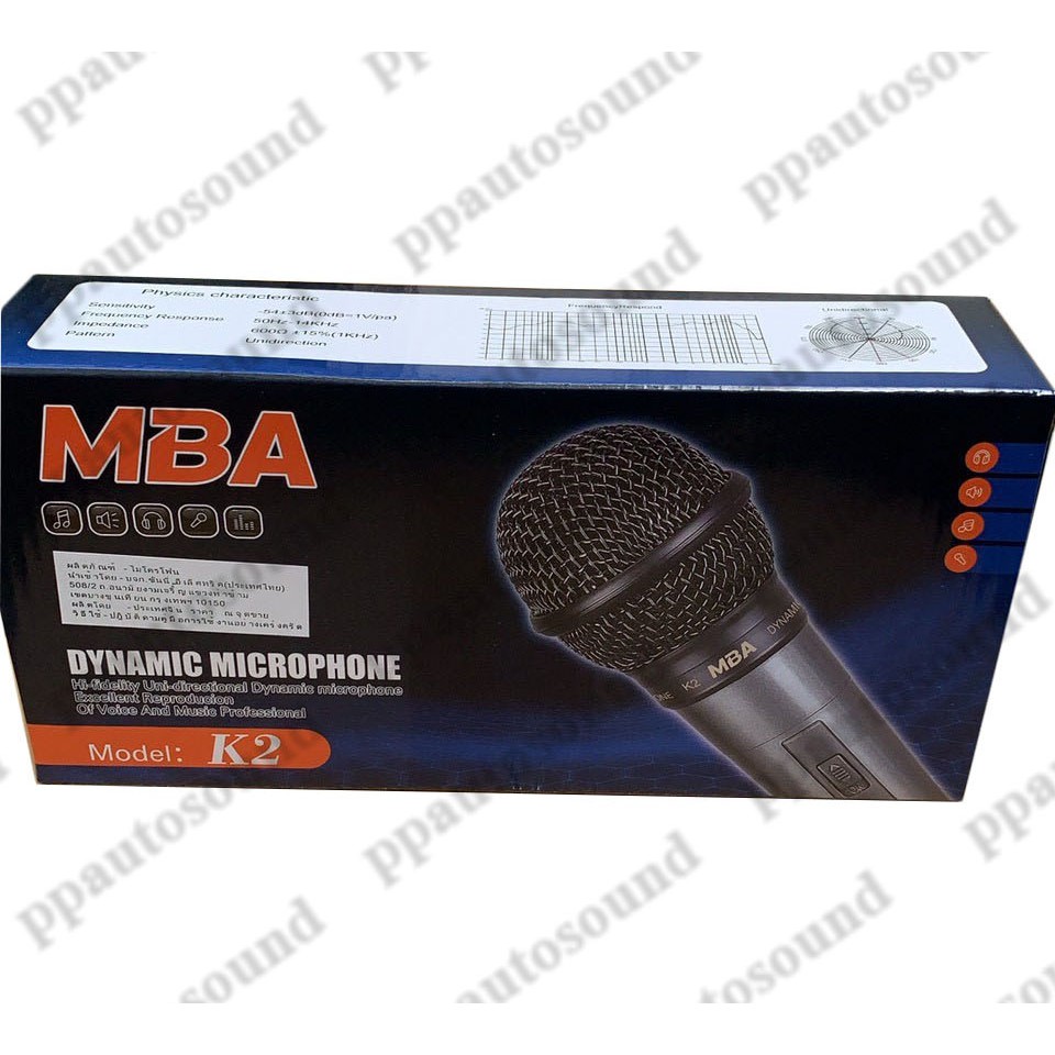 🚚✔ MBA K2 ไมค์โครโฟน DYNAMIC Microphone ไมค์โครโฟนแบบมีสาย สายยาว 3 เมตร ไมคฺ์ พูด ร้องเพลง