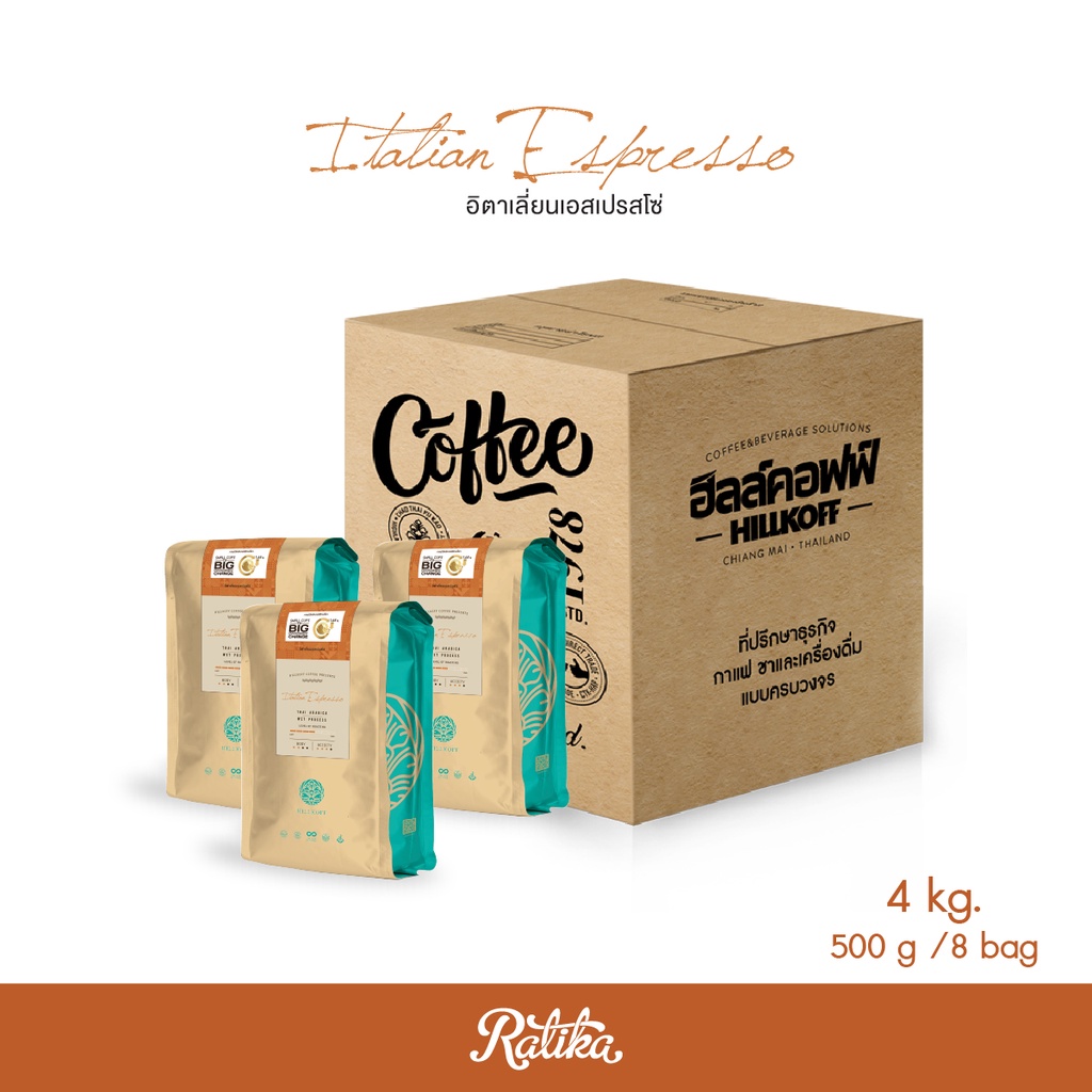 Ratika | ยิ่งซื้อ ยิ่งลด เมล็ดกาแฟคั่ว อราบิก้าแท้ 100 % ตรา ฮิลล์คอฟฟ์ (Thai Espresso Roast ) 500 g ขนาด 2 / 4 kg.