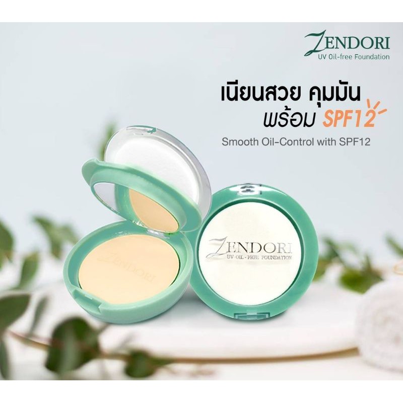 Zendori แป้งเซนโดริยูวีออยล์ฟรี ฟาวเดชั่น (ตลับเขียว)
