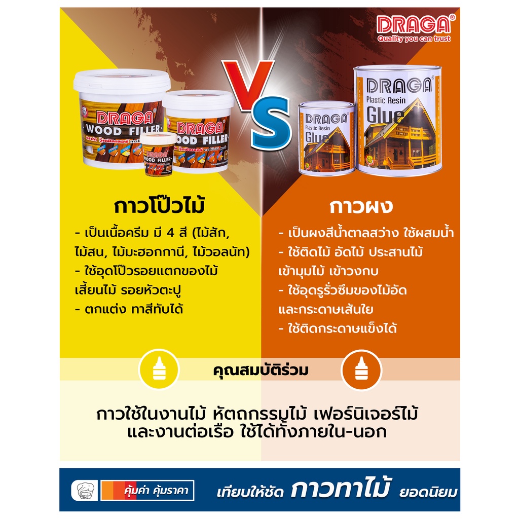 DRAGA กาวพลาสติกเรซิ่น กาวผง สำหรับงานไม้ ขนาด 450 กรัม, 2.28 กก.
