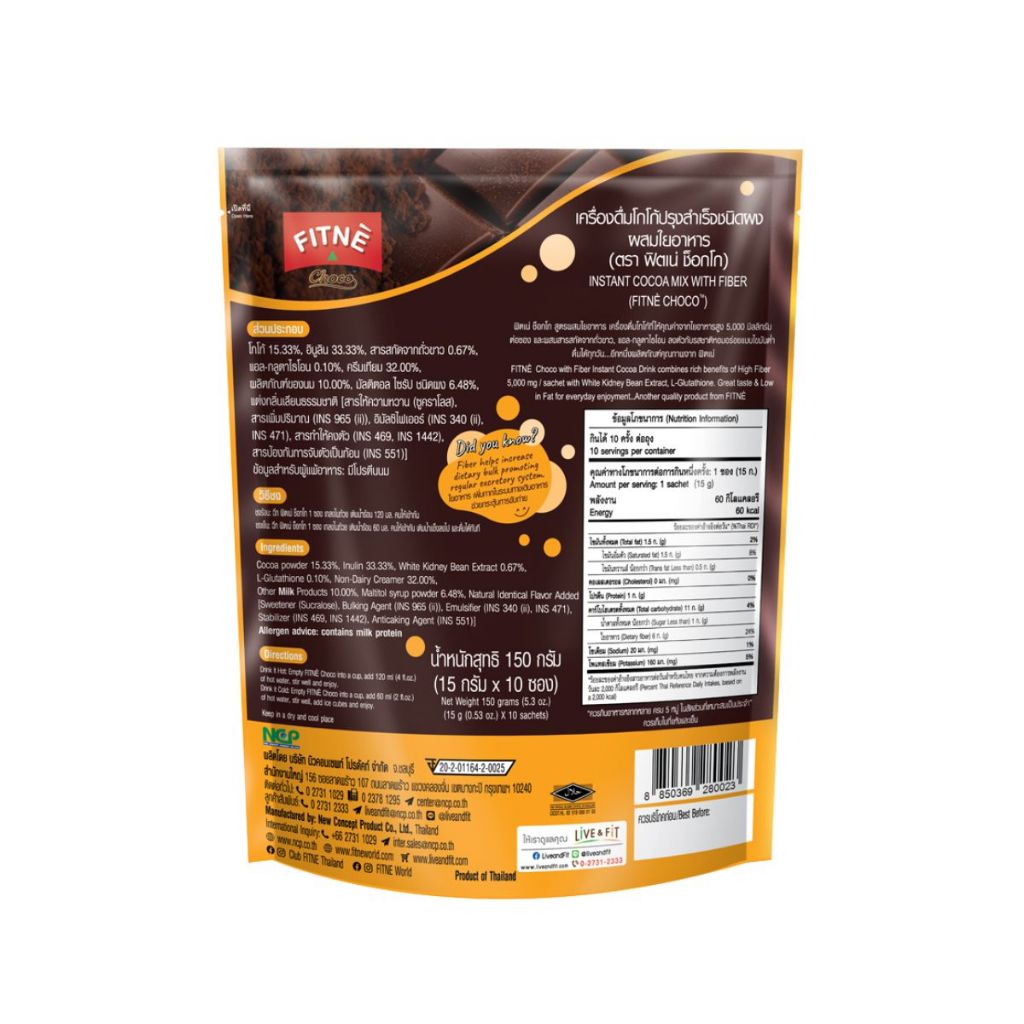 FITNE' ฟิตเน่ ช็อกโก เครื่องดื่มโกโก้ปรุงสำเร็จชนิดผง 3in1 ผสมใยอาหาร ขนาด 10 ซอง
