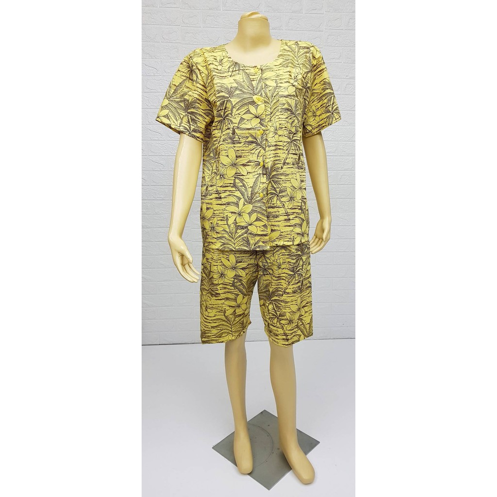 เสื้อติดกระดุมผ่าหน้า กางเกงใส่ยาง มีกระเป๋าทั้งเสื้อและกางเกง Size ใหญ่พิเศษ Cotton 100% M L XL ชุดนอนผู้หญิง ชุดลำลอง