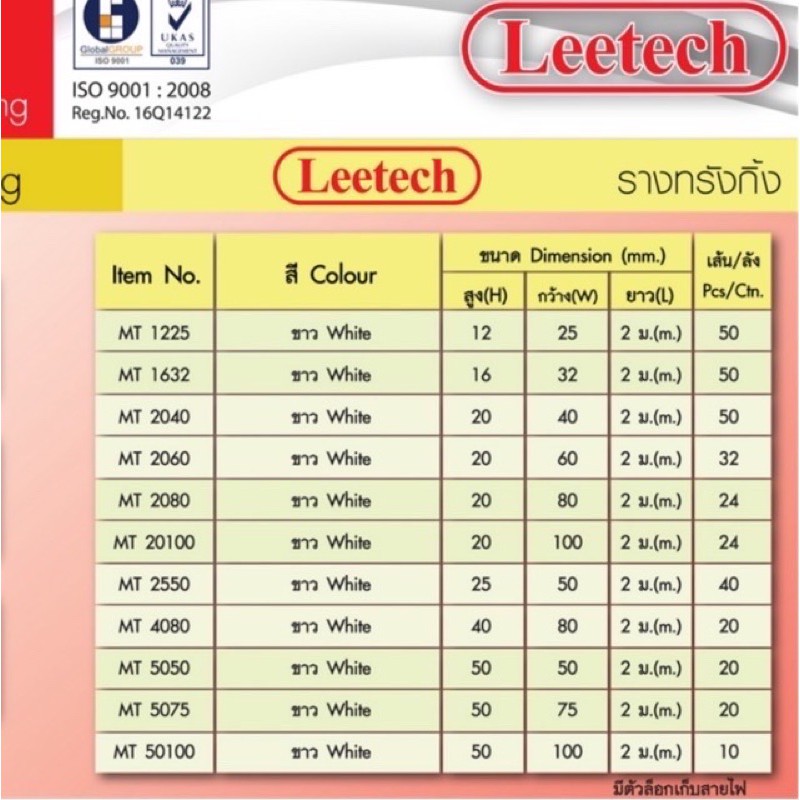 ‼️รบกวนอ่านก่อนสั่ง‼️ Leetech รางเก็บสายไฟ รางทรังกิ้ง 12x25มม. ยาว 2 เมตร MT1225 (WTE)