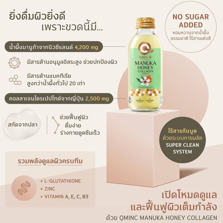 คิวมินซี เครื่องดื่มน้ำผึ้งมานูก้าผสมคอลลาเจน 2 ลัง (48 ขวด)QminC Manuka Honey + Collagen 48 Bottles