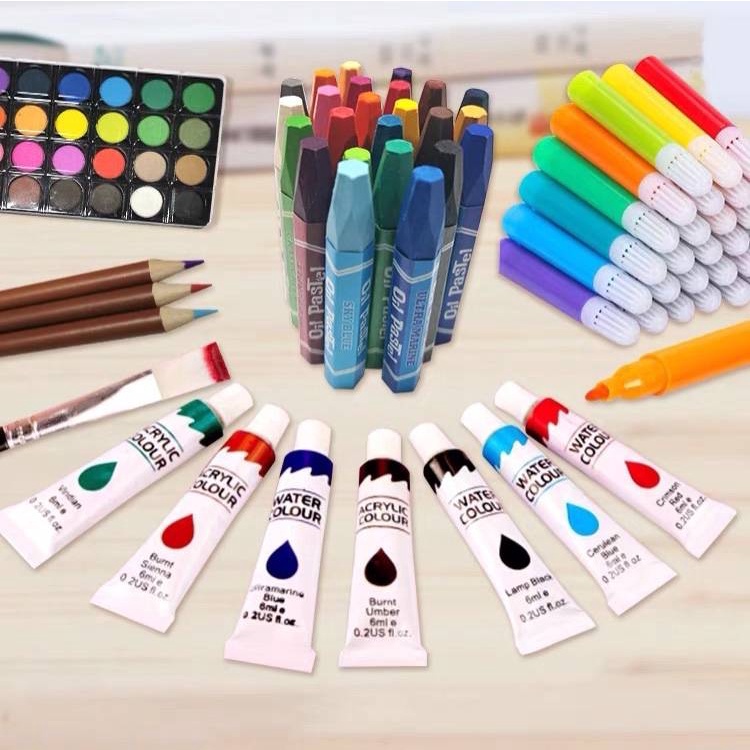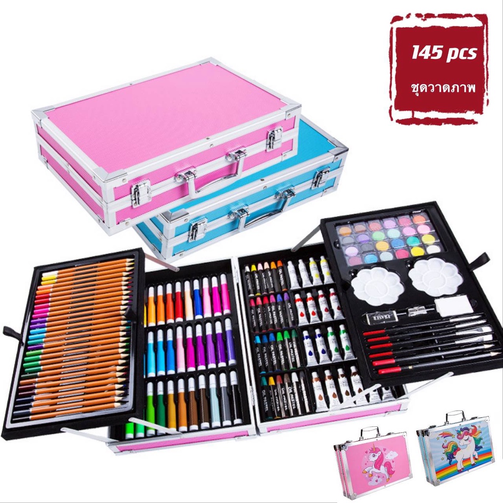ใหม่ ชุดระบายสี2ชั้น 145 ชิ้น สีฟ้า/ชมพู กล่องสีพาเลทสี พาเลทระบายสี กล่องอลูมิเนียม สีสวยทุกสี