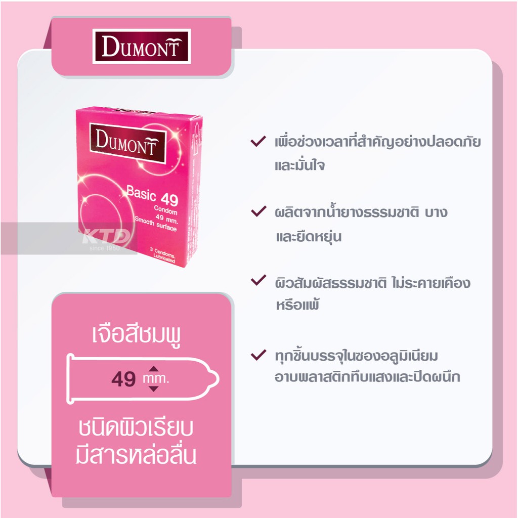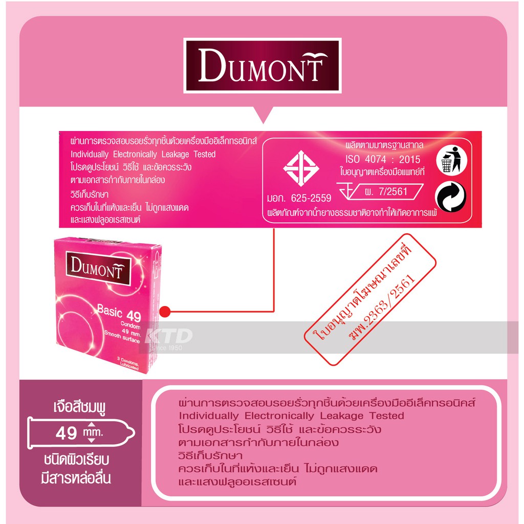 ถุงยางอนามัย Dumont Basic Size 49 ผิวเรียบ ซื้อ 24 กล่อง แถมฟรี!!! 4 กล่อง