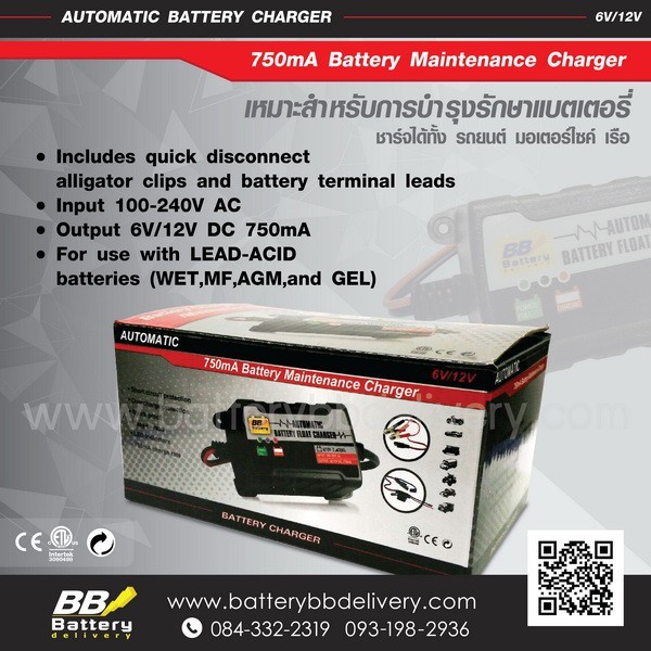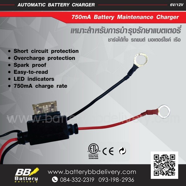 เครื่องชาร์จแบตเตอรี่ มอเตอร์ไซค์ เครื่องชาร์จแบตบิ๊กไบค์ 6V/12V/750mAh 📌 สายจอด 📌 ต้องจัด