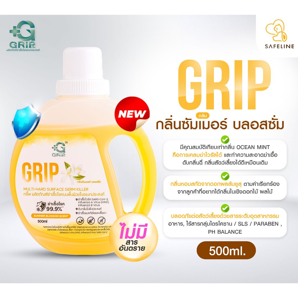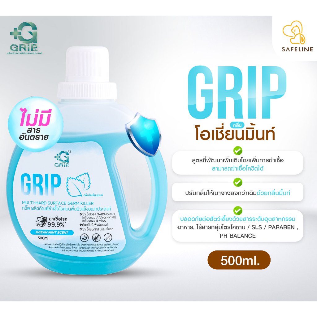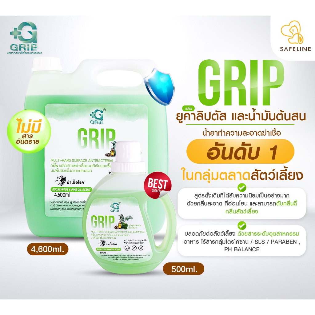 Grip น้ำยาฆ่าเชื้อ ทำความสะอาด ถูพื้น ปลอดภัย ไม่ก่อให้เกิดการแพ้ต่อเด็กเล็ก สัตว์เลี้ยง
