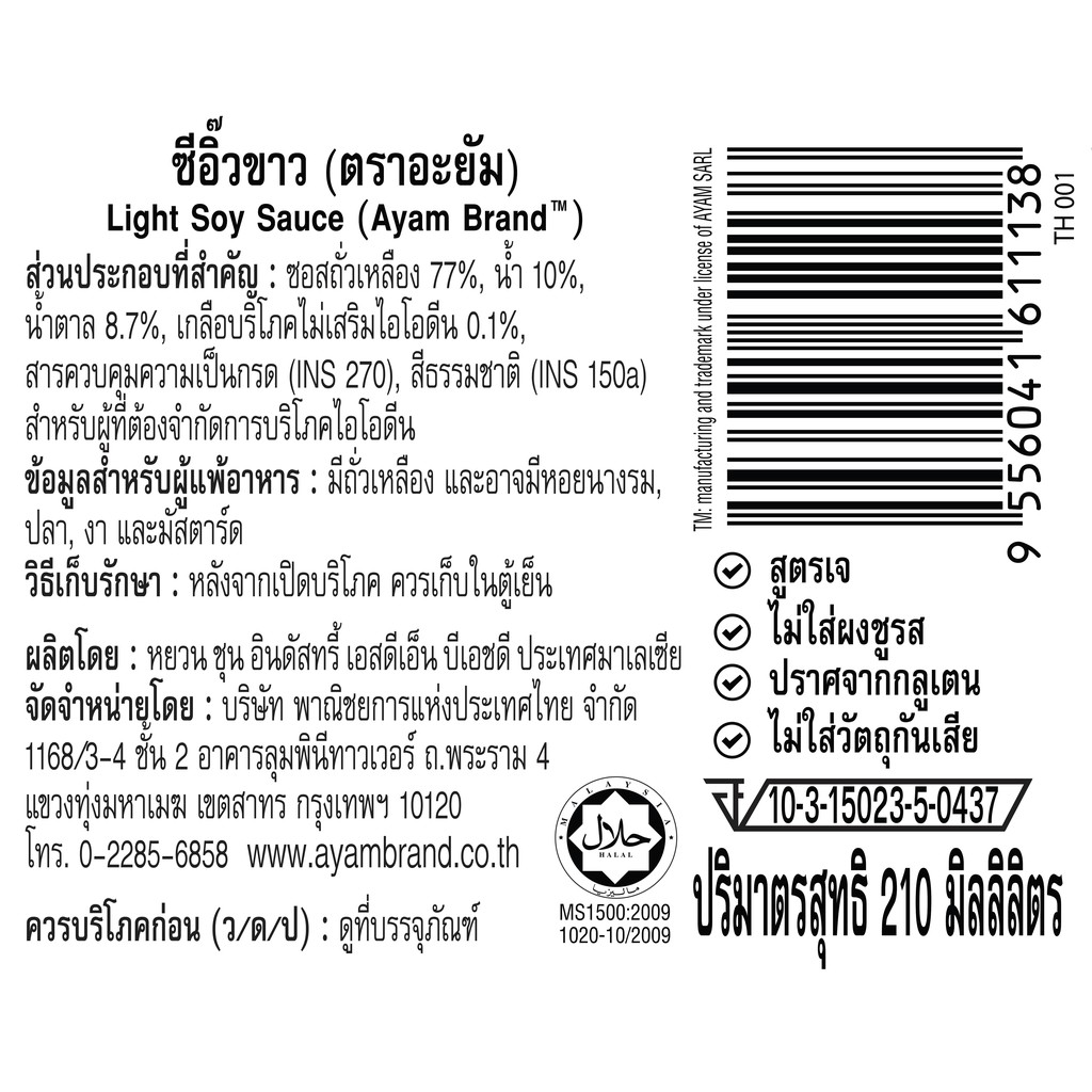 อะยัม ซีอิ๊วขาว 210 มิลลิลิตร (Gluten Free)