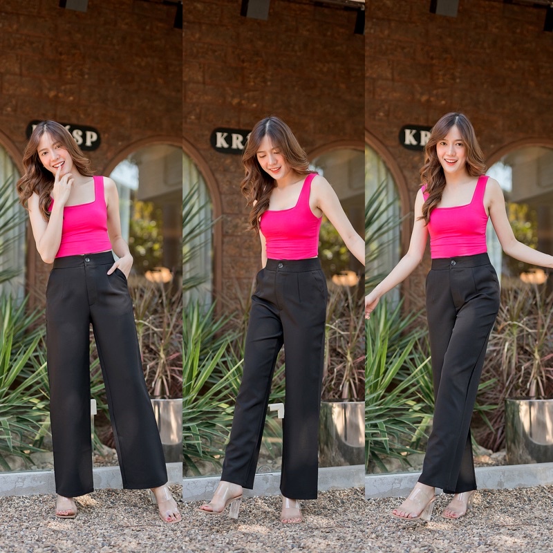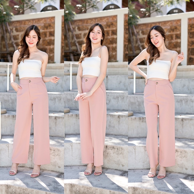 🍒A80🍒กางเกงผ้าไมโคร ขายาวกระบอกใหญ่ซิปหน้า ไซส์S-3XL📦งานป้ายร้านพร้อมส่ง