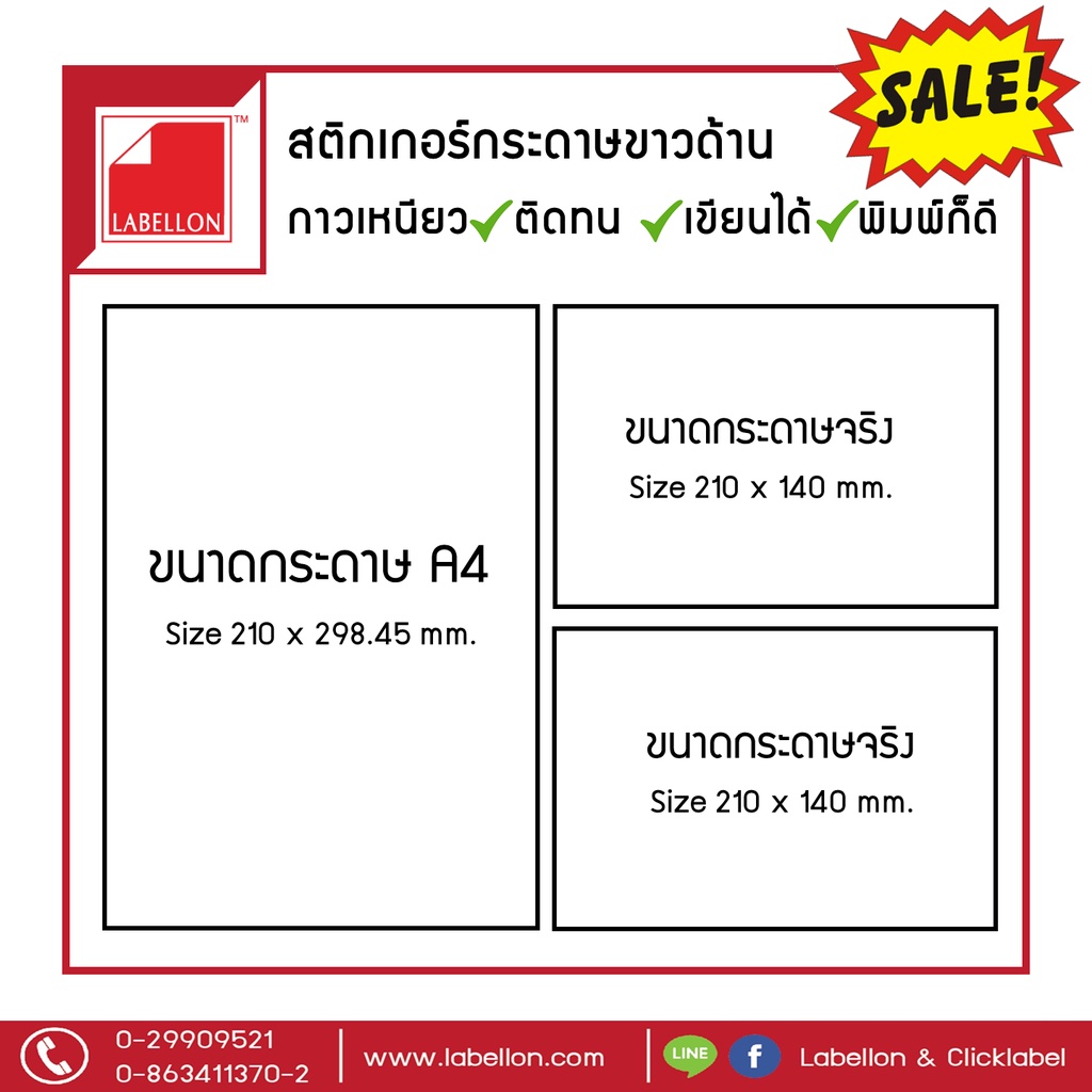 สติกเกอร์ราคาถูกสุดๆ - สติกเกอร์กระดาษขาวด้าน A5 | 200แผ่น/แพ็ค | กาวเหนียว พิมพ์ได้