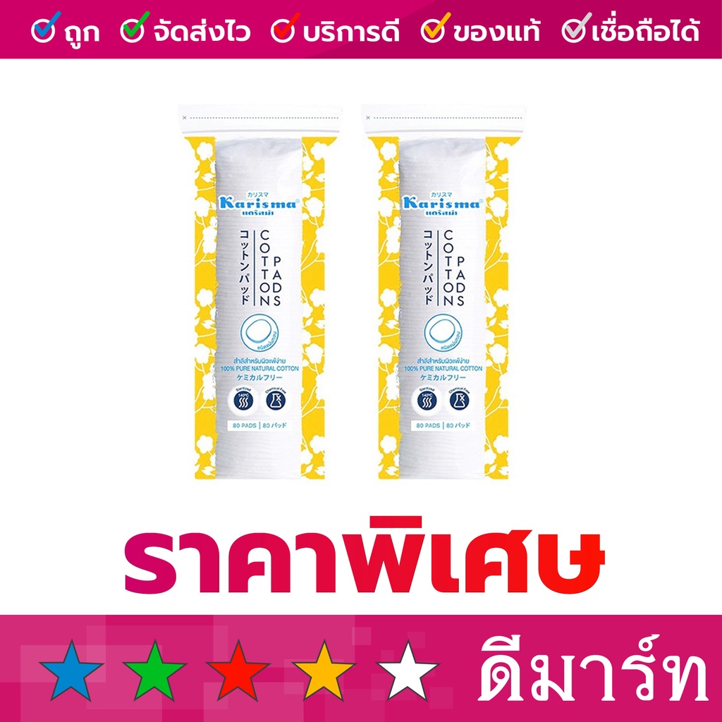 แคริสม่า สำลีแผ่นรีดขอบ 80 แผ่น ชนิดกลมรีดขอบ ซื้อ 1 แถม 1
