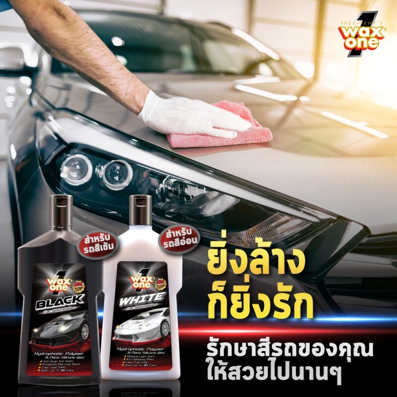 WaxOne แชมพูล้างรถ ผสมแวกซ์ รถสีอ่อน ล้างและเคลือบเงาในขั้นตอนเดียว เพิ่มความเงางามให้สีรถ White Car Wash and Wax 650ml.