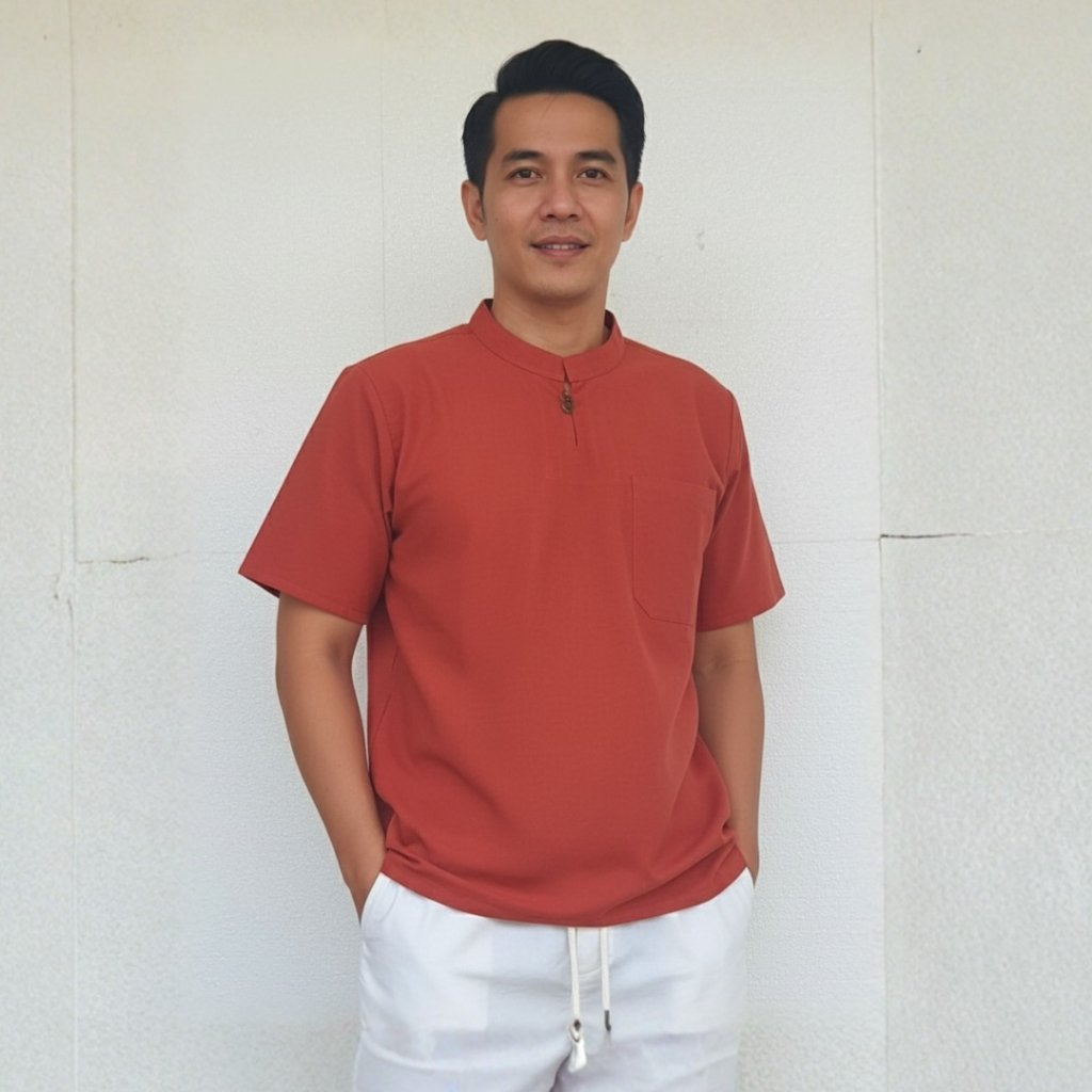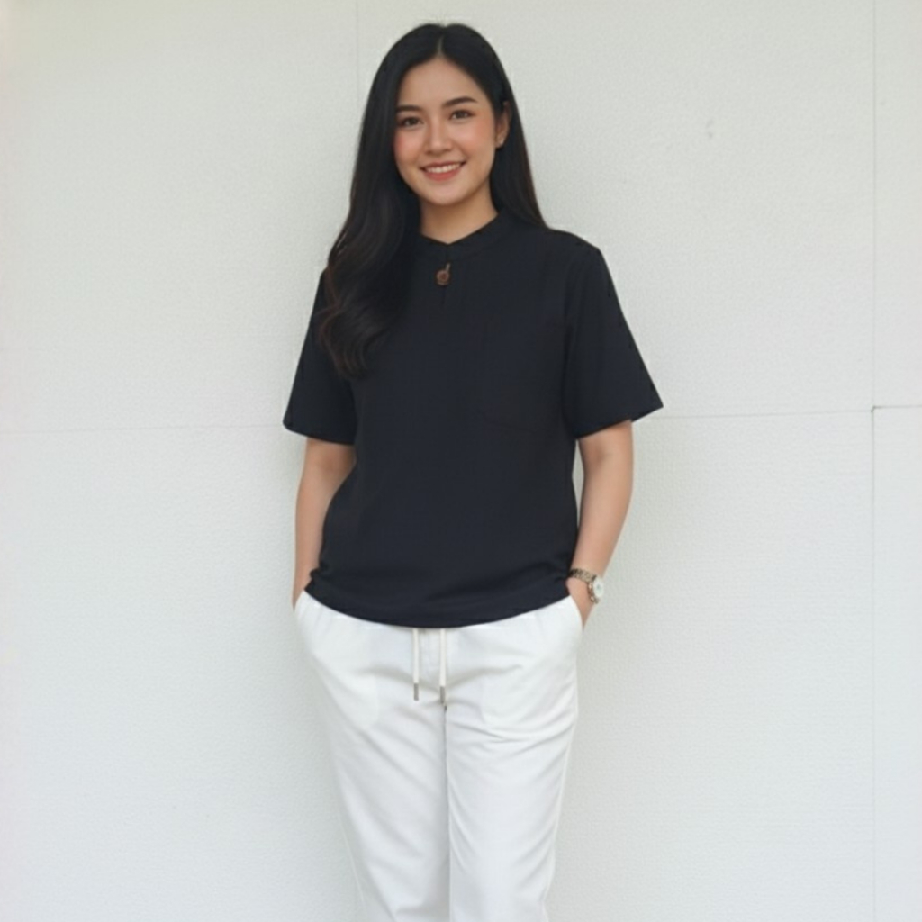 เสื้อคอจีน ผ้าฝ้ายแท้ แต่งกระดุมไม้ 2 เม็ด ใส่สบาย ไม่ร้อน