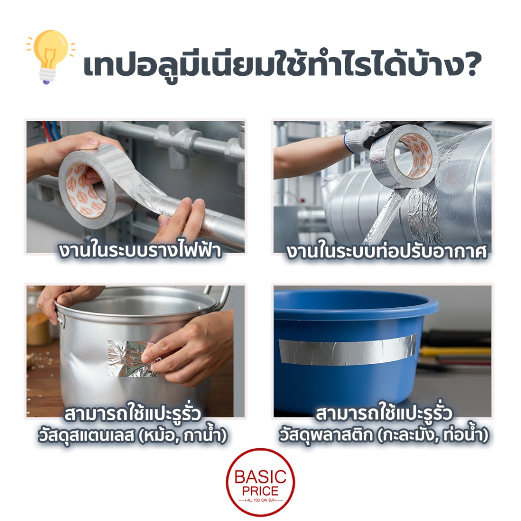 (ม้วนเดี่ยว) เทปอลูมิเนียม (ขนาด 5 หลา) แผ่นปะหม้อ แปะหม้อ หม้อรั่ว ซ่อมหม้อ ปะหม้อ