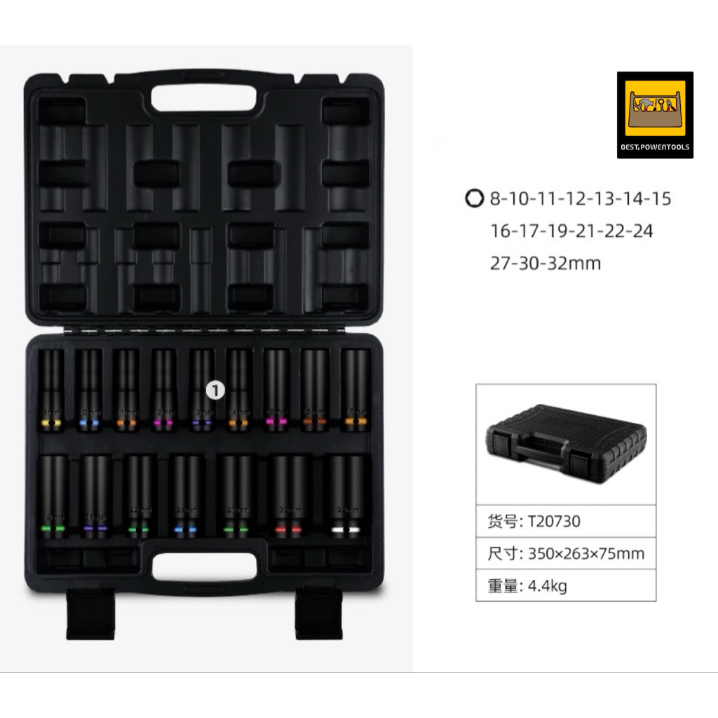 THAKITEC ชุดลูกบล็อกดำยาว ชุดลูกบล็อกลม ตัวยาว 16/10 ตัว เบอร์ 8-32 mm. ขนาด 1/2"(4หุน)CR-MO 100% มาพร้อมกล่องแข็งแรง