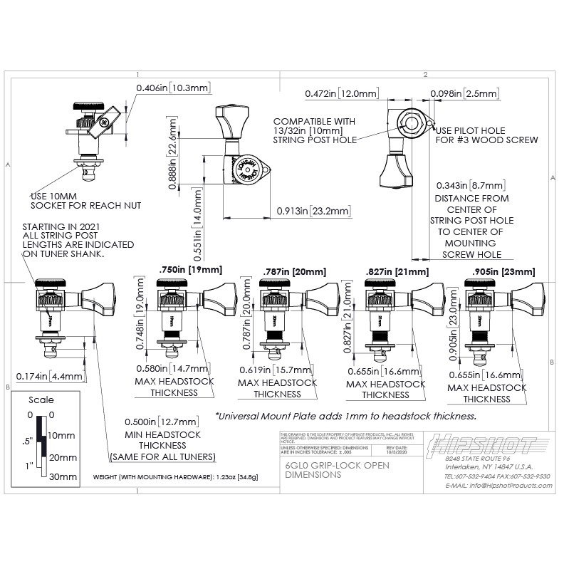 Hipshot Grip-Lock Open ลูกบิดกีต้าร์ ล็อคสาย สี Black 3+3 (6K2GL0B)