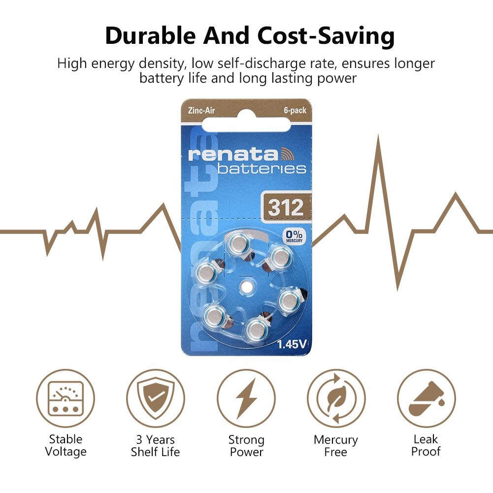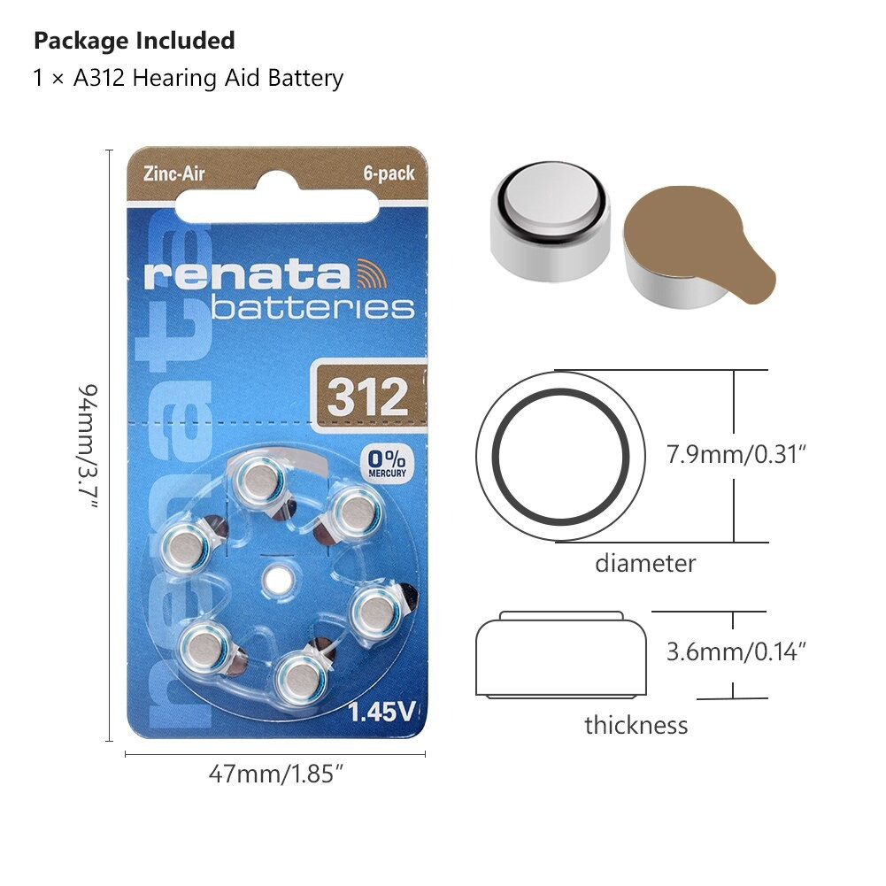Renata A312 Pr41 ถ่านเครื่องช่วยฟัง เบอร์312 สีน้ำตาล ของเเท้พร้อมส่ง HearingAidsBatteries