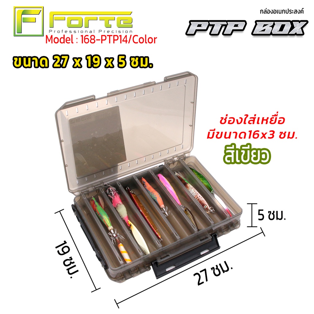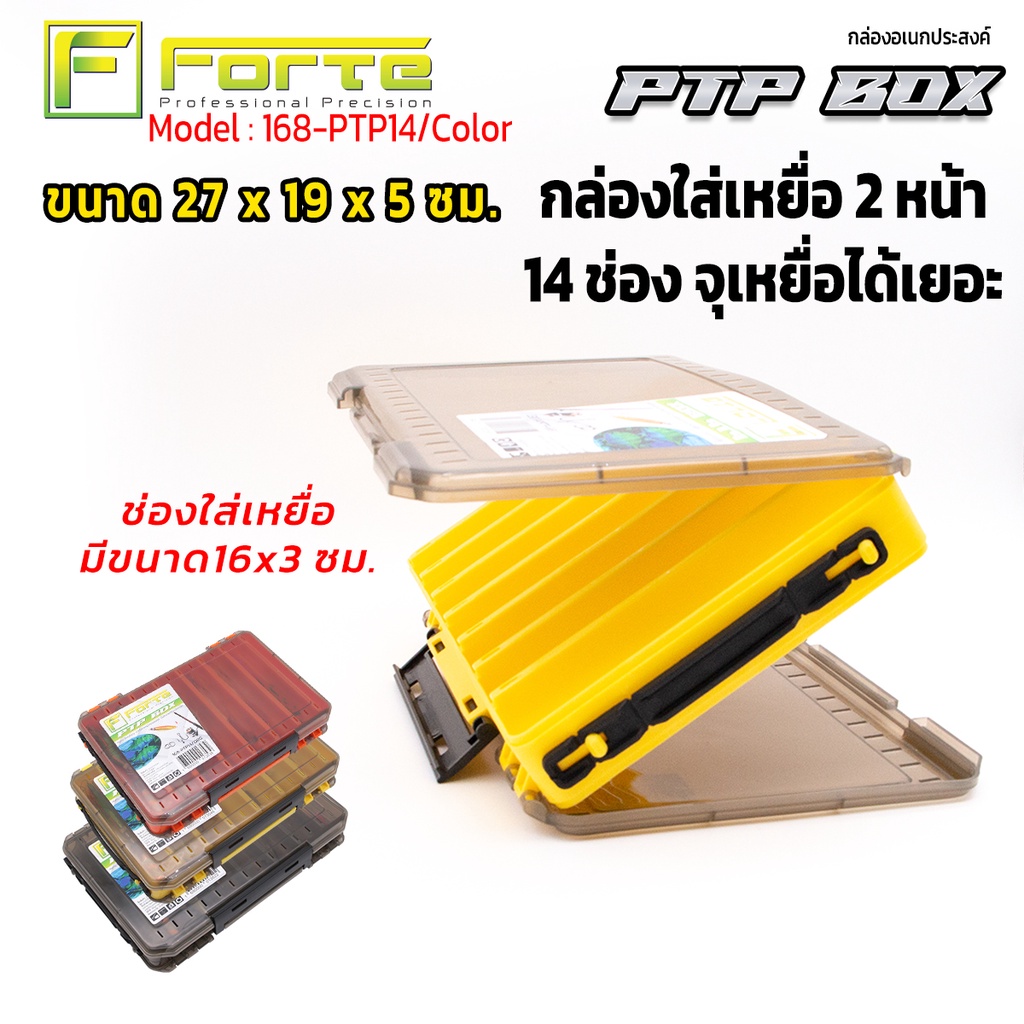 กล่องใส่เหยื่อ 2 หน้า 14 ช่อง PTP จุเหยื่อได้เยอะ ตัวล็อกแน่นหนา หูจับทำจากยางอย่างดีไม่เจ็บมือ