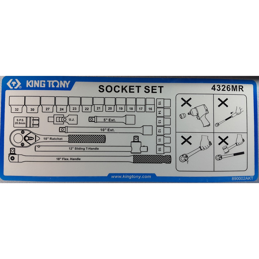 ชุด 4326mr ชุดบล็อก เอนกประสงค์ KINGTONY กล่องเทา [ คิงโทนี่ ] 25 ชิ้น Pcs.