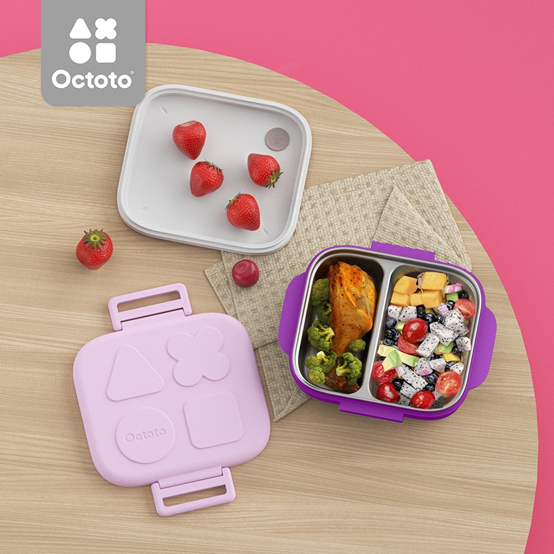 Octoto Bento Box PLUS กล่องเก็บอาหารสเตนเลส มาพร้อมกล่องเล็กด้านใน กันหกใส่ซุปได้ สำหรับเด็ก3-7 ปี