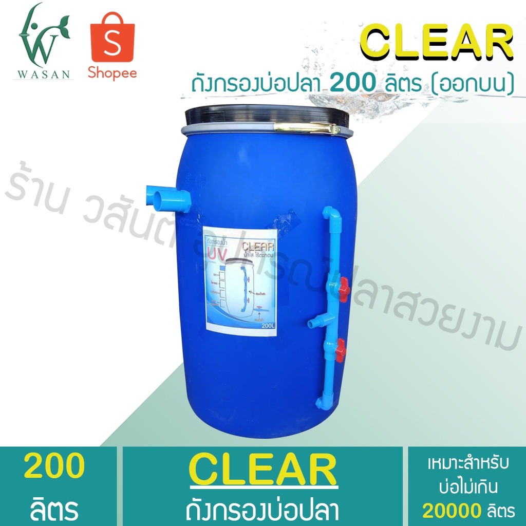 ถังกรองบ่อปลา 200 ลิตร ออกบน (เฉพาะถังกรอง) แข็งแรง ทนทาน กรองน้ำสะอาด