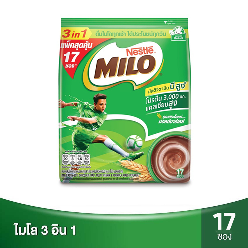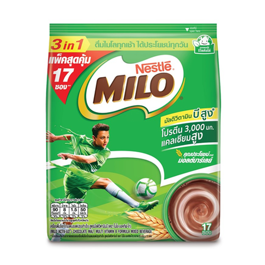 [ทั้งหมด 2 ถุง] ไมโล แอคทิฟ-โก เครื่องดื่มช็อคโกแล็ตมอลต์ปรุงสำเร็จชนิดผง 3อิน1 23 กรัม X 17 ซอง MILO ACTIV-GO