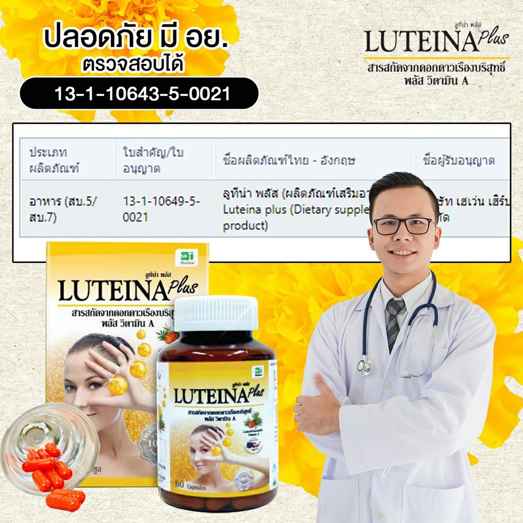 ลูทีน่า พลัส 2กระปุก ราคาพิเศษ !แถมแว่นตา+เม็ดอมVit C! บำรุงดวงตา บำรุงสายตา เร่งตาสว่าง Luteina Plus ส่งฟรี!