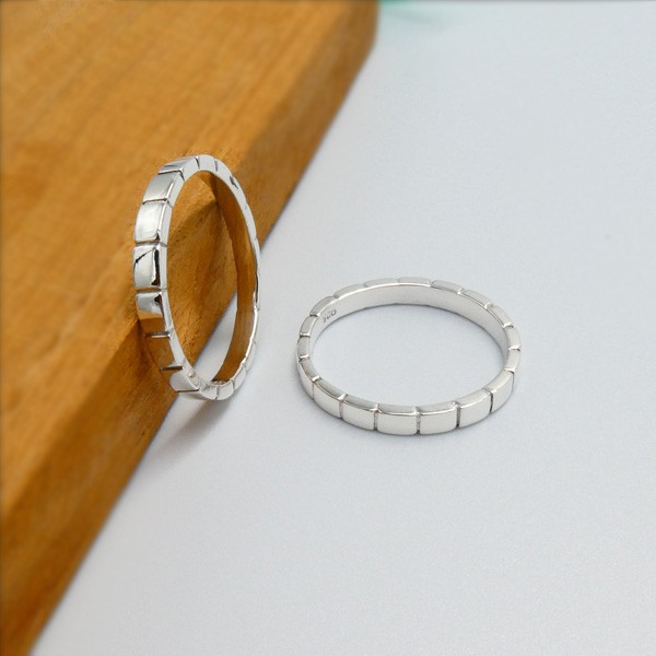 แหวนเงินแท้92.5% ลายสี่เหลี่ยมเส้นขวาง สไต์มินิมอล ดีไซน์เก๋ๆ : E-V-Rec2.6