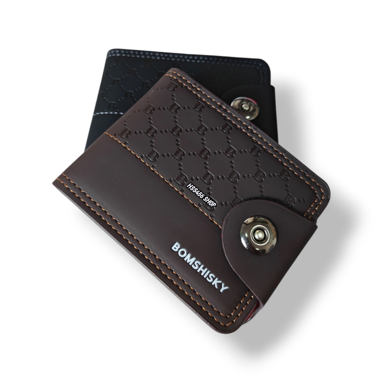 กระเป๋าสตางค์ผู้ชายBomshiskyใบเล็กแบบสั้น #XH-005 กะดุมครึ่ง