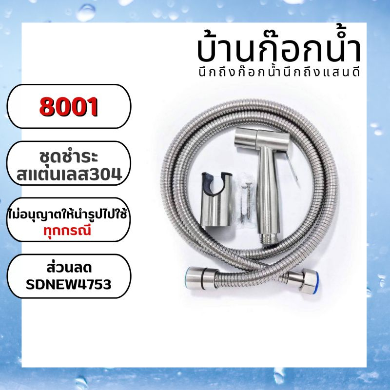ชุดฉีดชำระแสตนเลส รหัส 304-8001 ความยาวสาย 1.2เมตร สายแรงดัน EPDM