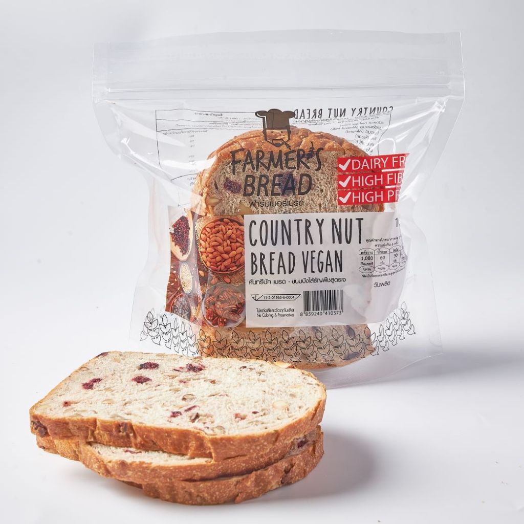 Farmer's bread Country Nut Bread Vegan คันทรีนัทสูตรเจฟาร์มเมอร์เกรน Xไม่เนยXไม่นมXไม่ไข่X